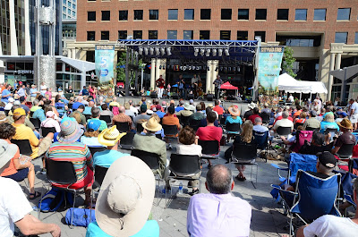 Wide Open Bluegrass: Claims by the City of Raleigh of overall attendance exceeding 250,00 over the five days of World of Bluegrass and Wide Open bluegrass should not allow you to believe that you can’t have a great time during the Wide Open Bluegrass portion, held in three large venues: The Red Hat Amphitheater, The Raleigh Convention Center, and TheStreet Fair running down Fayetteville Street for five blocks from Lenoir Street to Morgan Street, in front of the State Capitol Building. The city estimates are an agregate number of tourist and business days for the entire week, but, while the streets are crowded, it is not a mob. Rather, a large, family crowd strolls up and down the street, enjoying music at six different stages located on side streets. They can also stroll between the stages enjoying art, clothing, and, especially, North Carolina food specialities along with free samples. There are also food vendors selling a wide range of edibles as well as several beer trucks along the way. In our five years of attending Wide Open Bluegrass, I've never encountered a drunk on the streets.